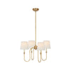 Este candelabro de lujo presenta un marco de latón con elegantes brazos en espiral y pantallas de color blanco suave. Su silueta atemporal lo hace ideal para salas de estar o comedores, aportando calidez y un refinado encanto.
