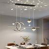 - La disposición de la lámpara es igualmente llamativa. En un lado, dos globos idénticos se unen a través de un cable largo y otro corto, mientras que en el lado opuesto, dos medios círculos se entrecruzan, evocando la imagen de un canal. Este diseño meticulosamente pensado no solo ofrece un aspecto visualmente atractivo, sino que también crea un efecto lumínico único y cautivador.