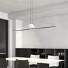 Esta lámpara colgante combina mármol y metal, ofreciendo durabilidad y elegancia. Disponible en negro u oro, su diseño rectangular lineal con una esfera en forma de luna es único y moderno. Ideal para la sala de estar, cocina o comedor, crea un ambiente sofisticado y acogedor para cualquier ocasión.