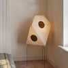 - Esta lámpara de pie está hecha de metal y materiales de papel. El metal confiere a la lámpara estabilidad y robustez, haciéndola duradera. El material de papel confiere a la lámpara una sensación ligera y difusa. La combinación de metal y papel confiere a la lámpara un aire moderno y original.