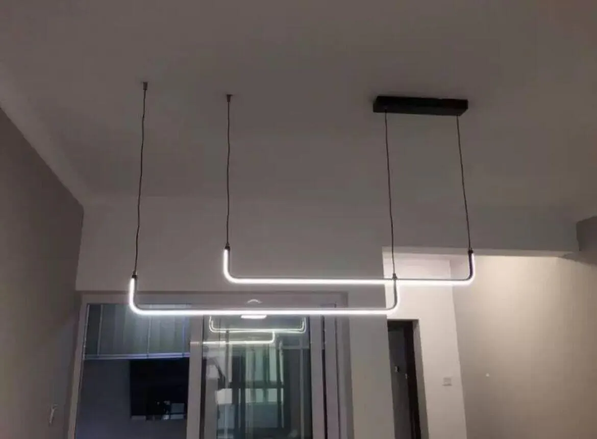 - La lámpara está hecha de metal y silicona. El material metálico confiere a la lámpara colgante un aspecto robusto y moderno, mientras que el material de silicona tiene una textura y un tacto suaves, lo que aporta un toque y una textura diferentes a la lámpara colgante.